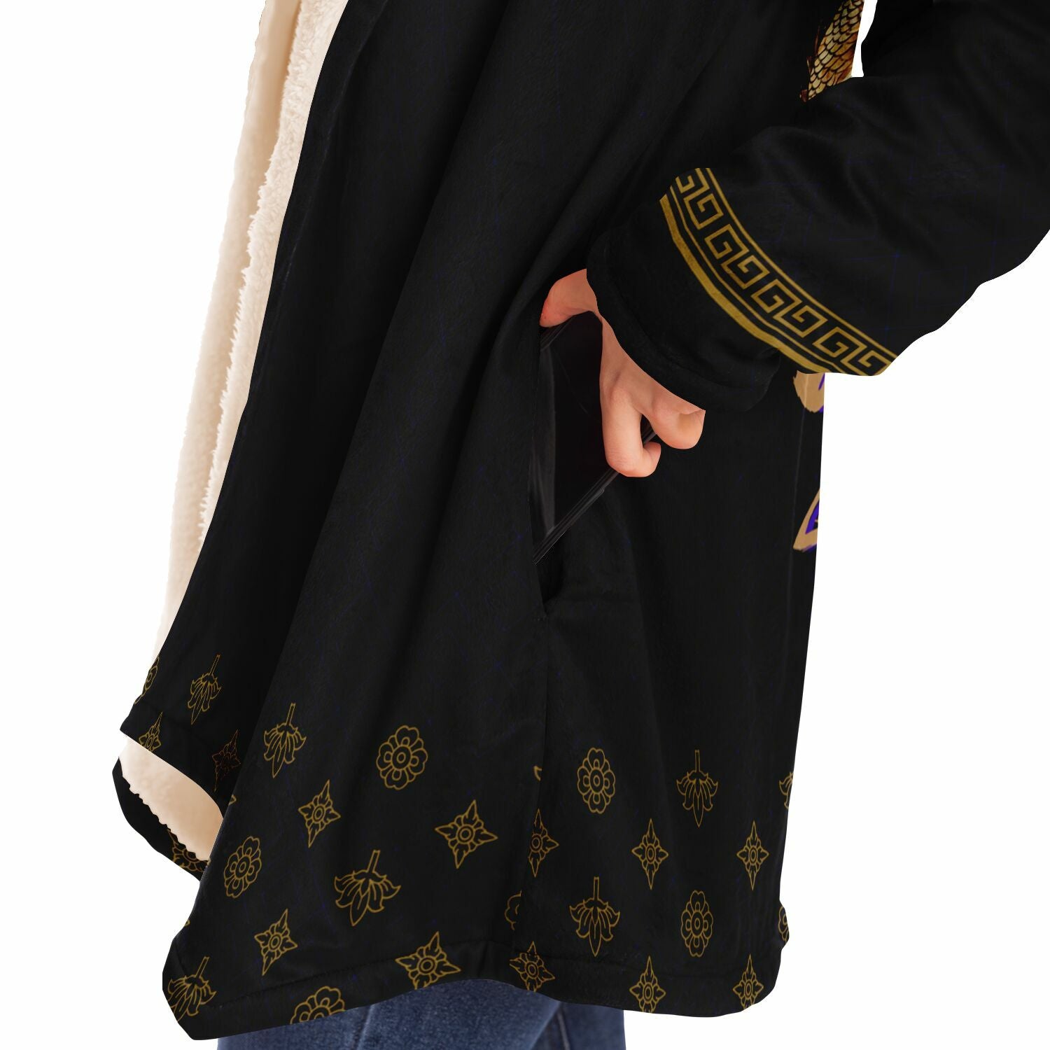 This luxurious cloak is made from an ultra-soft premium microfiber fleece lining. The outside is made with a micro-mink polyester fabric that allows the print to be high definition with vibrant colors. Featuring two deep side pockets to keep your belongings safe and your hands warm.