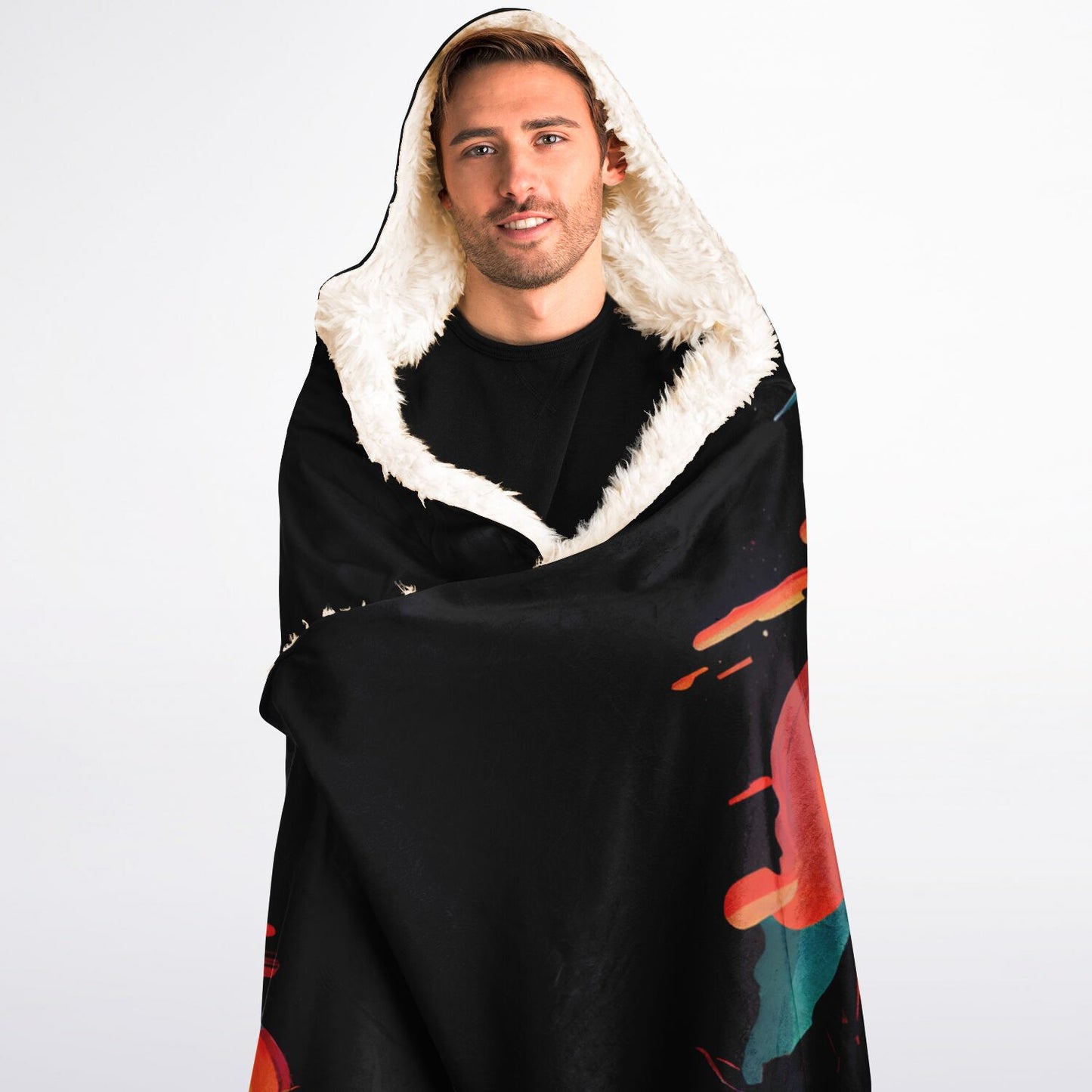 This Hooded Sherpa Blanket is crafted from an outer silky smooth micro-mink polyester face and includes a premium plush 100% polyester sherpa lining. Each hooded blanket is individually printed, cut, and sewn to ensure a flawless graphic with no imperfections.